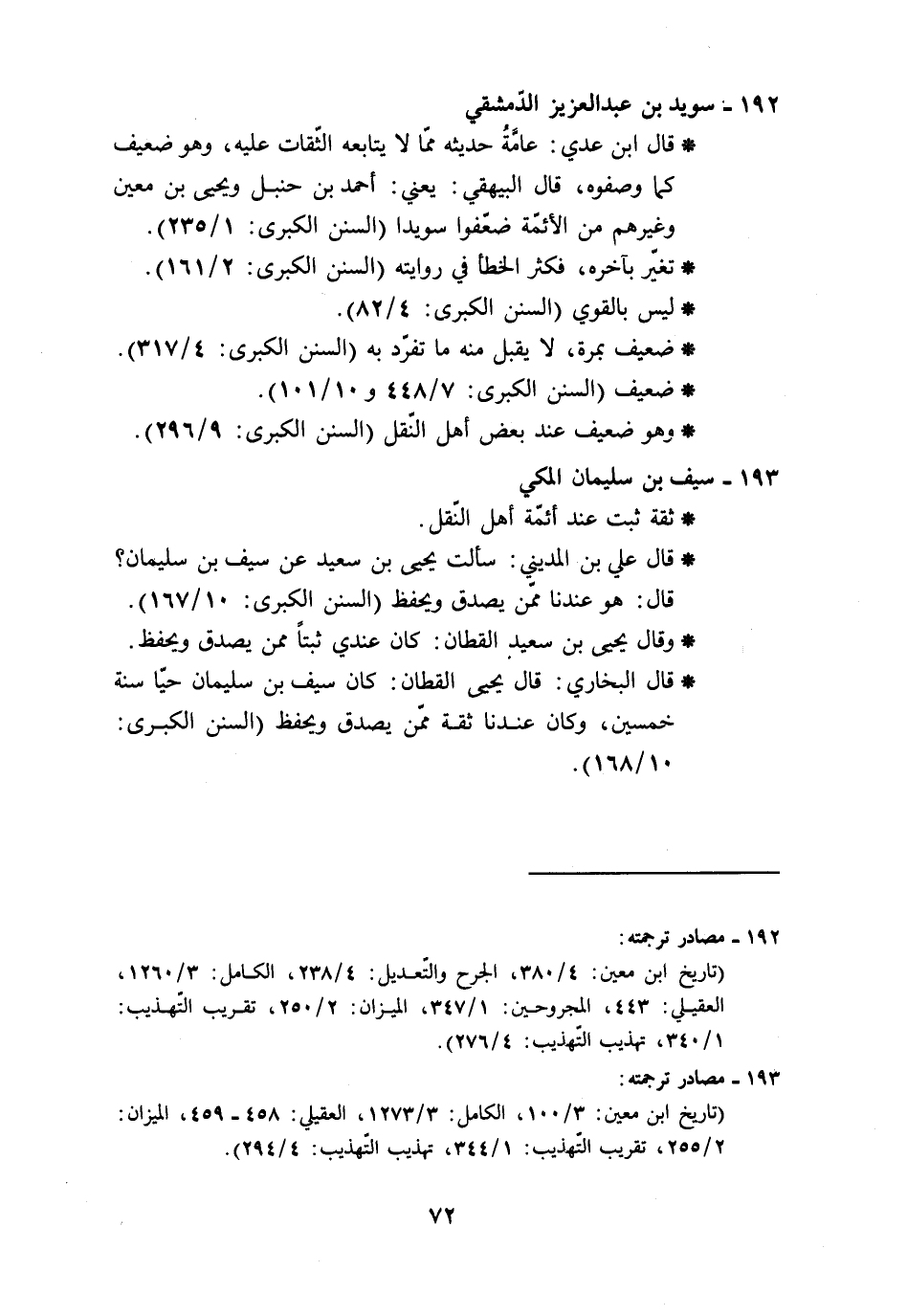 * قال ابن عدي: عامَّةُ حديثه مِمّا لا يتابعه الثّقات عليه، وهو ضعيف كما وصفوه، قال البيهقي: يعني: أحمد بن حنبل ويحيى بن معين وغيرهم من الأئمة ضعّفوا سويدا (السنن الكبرى: 1/ 235).