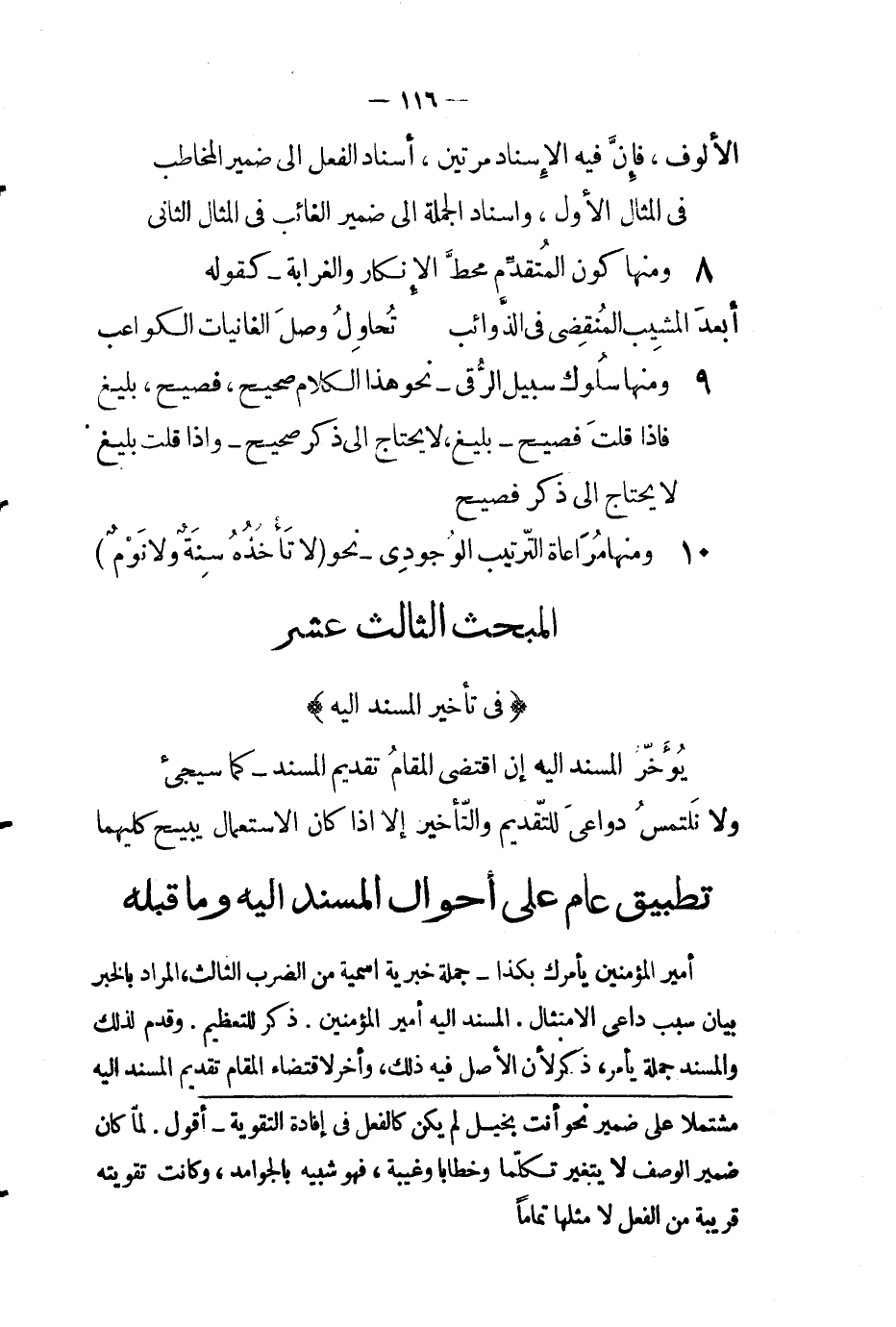 «جـ» وإما بحضوره بذاته نحو: (اليوم أكملتُ لكن دينكم) أو بمعرفة السامع له - نحو: هل انعقد المجلس - ويُسمى (عهداً حُضورياً) .