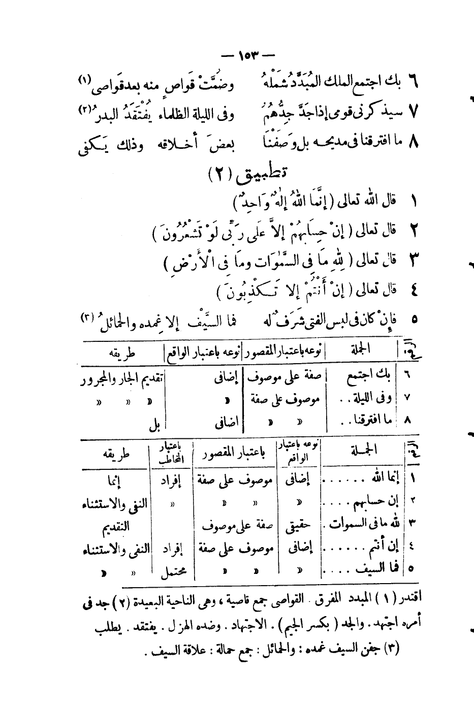 (ب) ومنها - تغليب المتصف بالشرط على غير المتصف به - نحو إذا لم تسافر كان كذا - وهلم جرَّا من عكس الأغراض التي سبقت