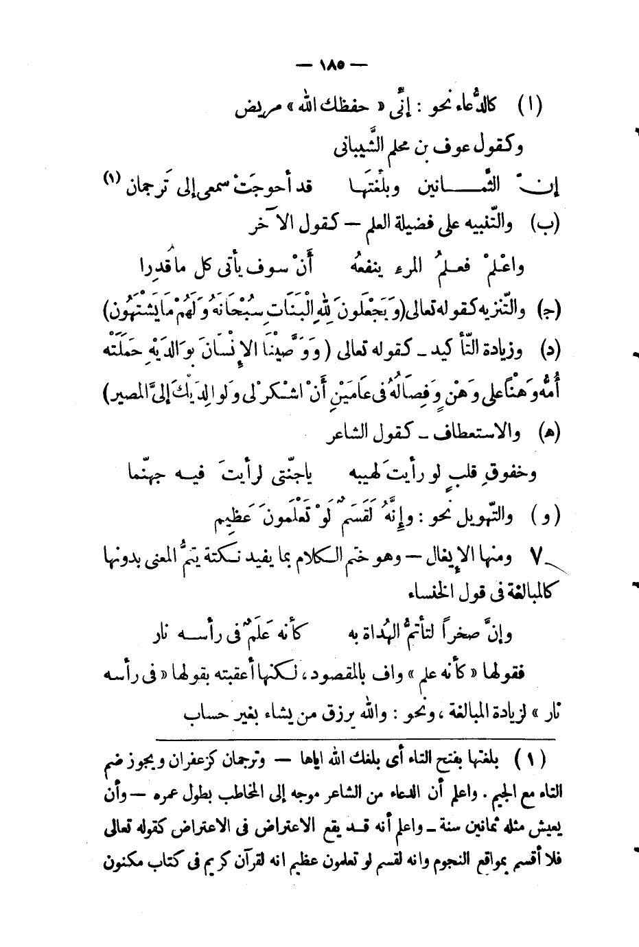 (¬1) وبيان ذلك بعبارة أخرى أنه إذا اجتمعت جملتان: فذلك على خمسة أحوال أولا - أن تكون الثانية بمعنى الأولى، أو جزءاً منها، فيجب ترك العطف لأن الشيء لا يعطف على نفسه، وكذا الجزء لا يعطف على كله.