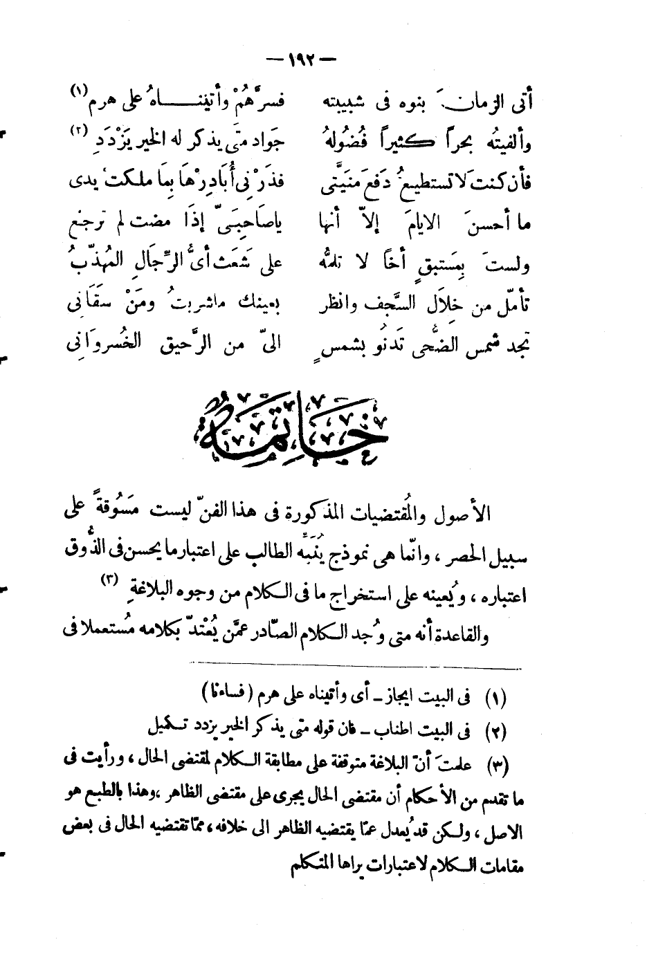 (¬1) فصل بين الشطر الثاني والأول، لأن بينهما كمال الاتصال - إذ الشطر الثاني مؤكد للأول.