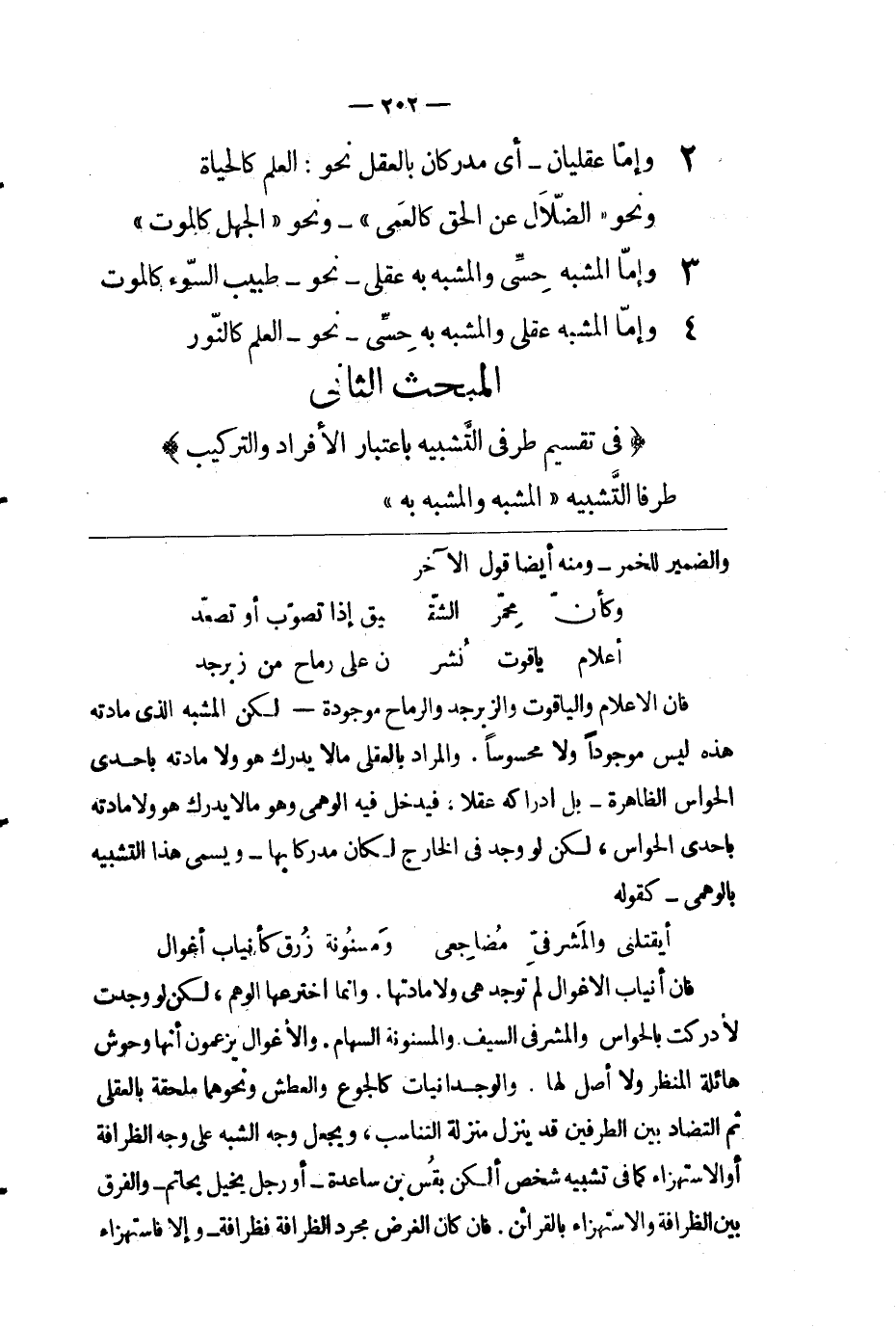 (4) ومنها - التوشيع: وهو أن يؤتى في آخر الكلام بمثنى مفسر بمفردين ليُرى المعنى في صورتين، يخرج فيهما من الخفاء المستوحش إلى الظهور المأنوس، نحو: العلم علمان، علم الأبدان، وعلم الأديان.
