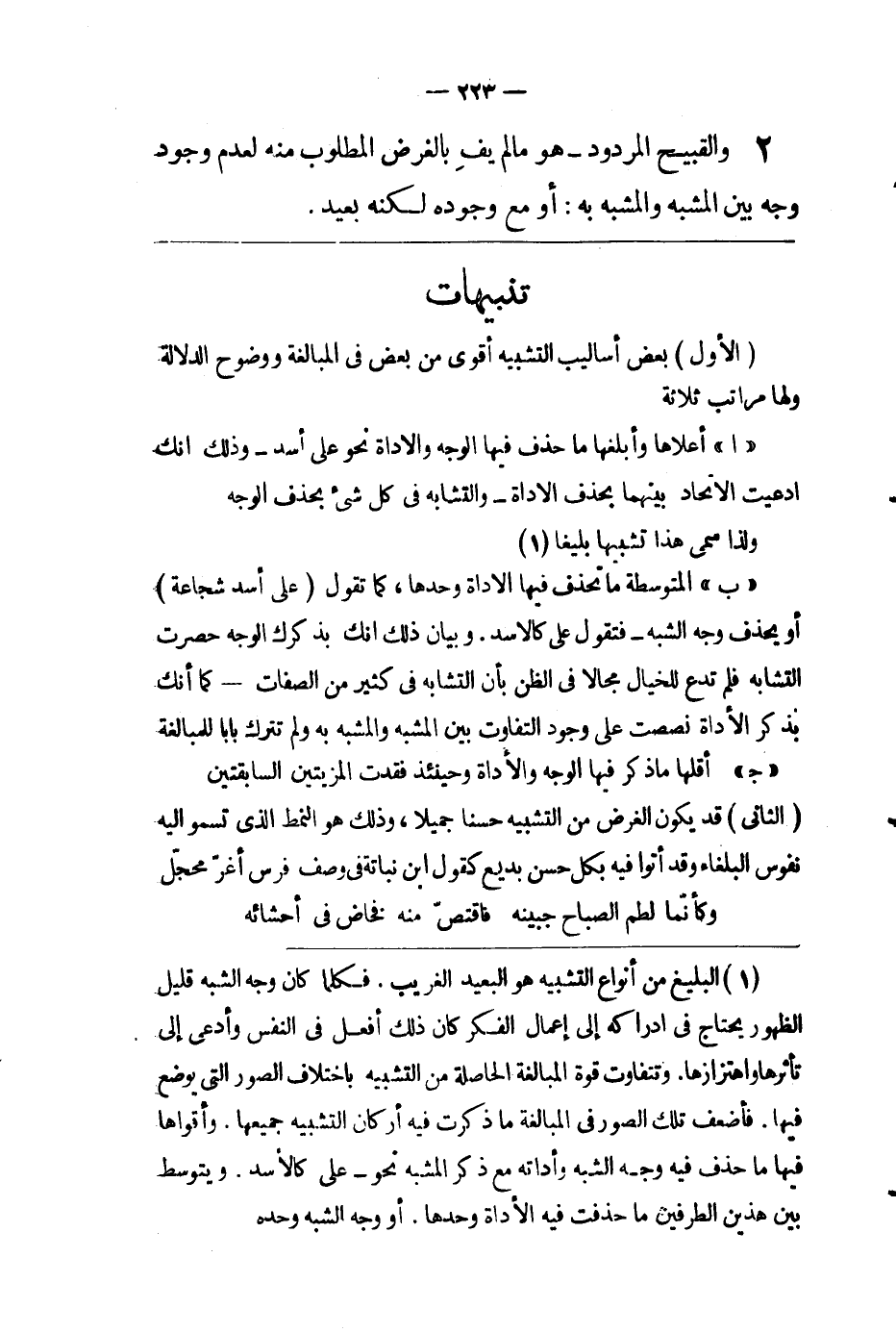 المبحث الثاني في تقسيم طرفي التشبيه: باعتبار الإفراد، والتركيب