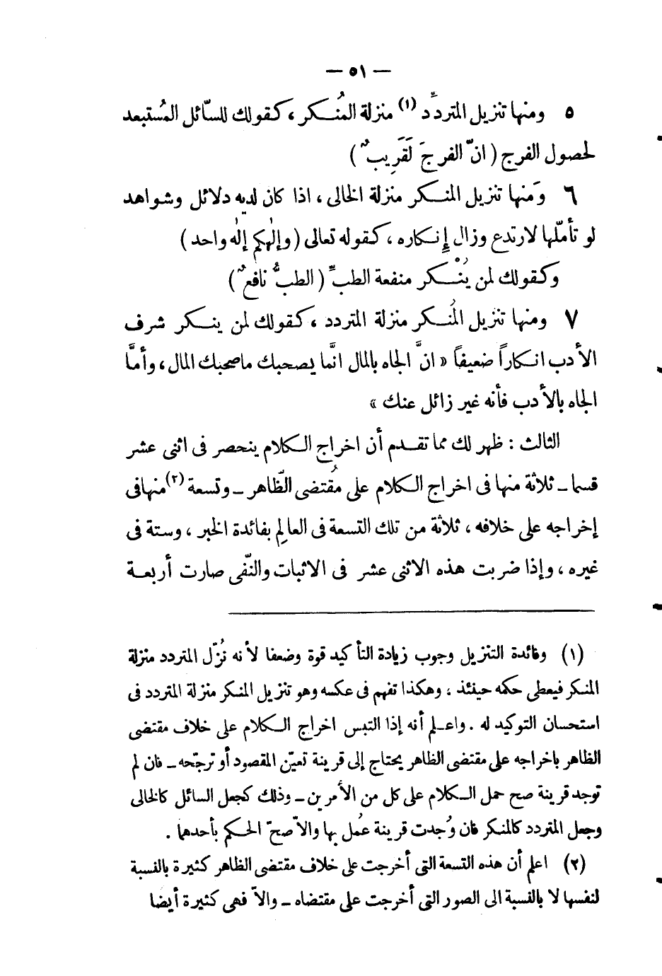 (¬1) ففي الأول يؤول - سماعك بالمعيدي خير - وفي الثاني - الأمير قريب قدومه، وفي نحو: لا إله إلا الله ينجو قائلها من النار - عدم شريك للمولى نجاة من النار.