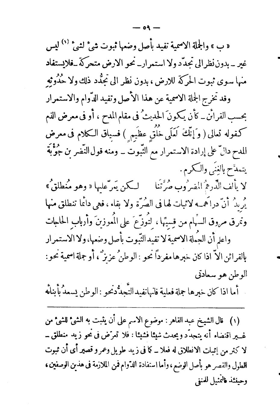 (¬1) أي فصار المقام مظنة للتردد والطلب - وان لم يتردد المخاطب، ولم يطلب بالفعل، وذلك لأنه تكاد نفس الذكي إذا قدم لها ما يشير إلى جنس الخبر أن تتردد في شخص الخبر، وتطلبه من حيث أنها تعلم أن الجنس لا يوجد إلا في فرد من أفراده فيكون ناظراً إليه بخصوصه كأنه متردد فيه كنظر السائل - فقوله - ولا تخاطبني يشير إلى جنس الخبر وانه عذاب - وقوله إنهم مغرقون - يشير إلى خصوص الخبر الذي أشير إليه ضمنا في قوله ولا تخاطبني - وكقول الشاعر.