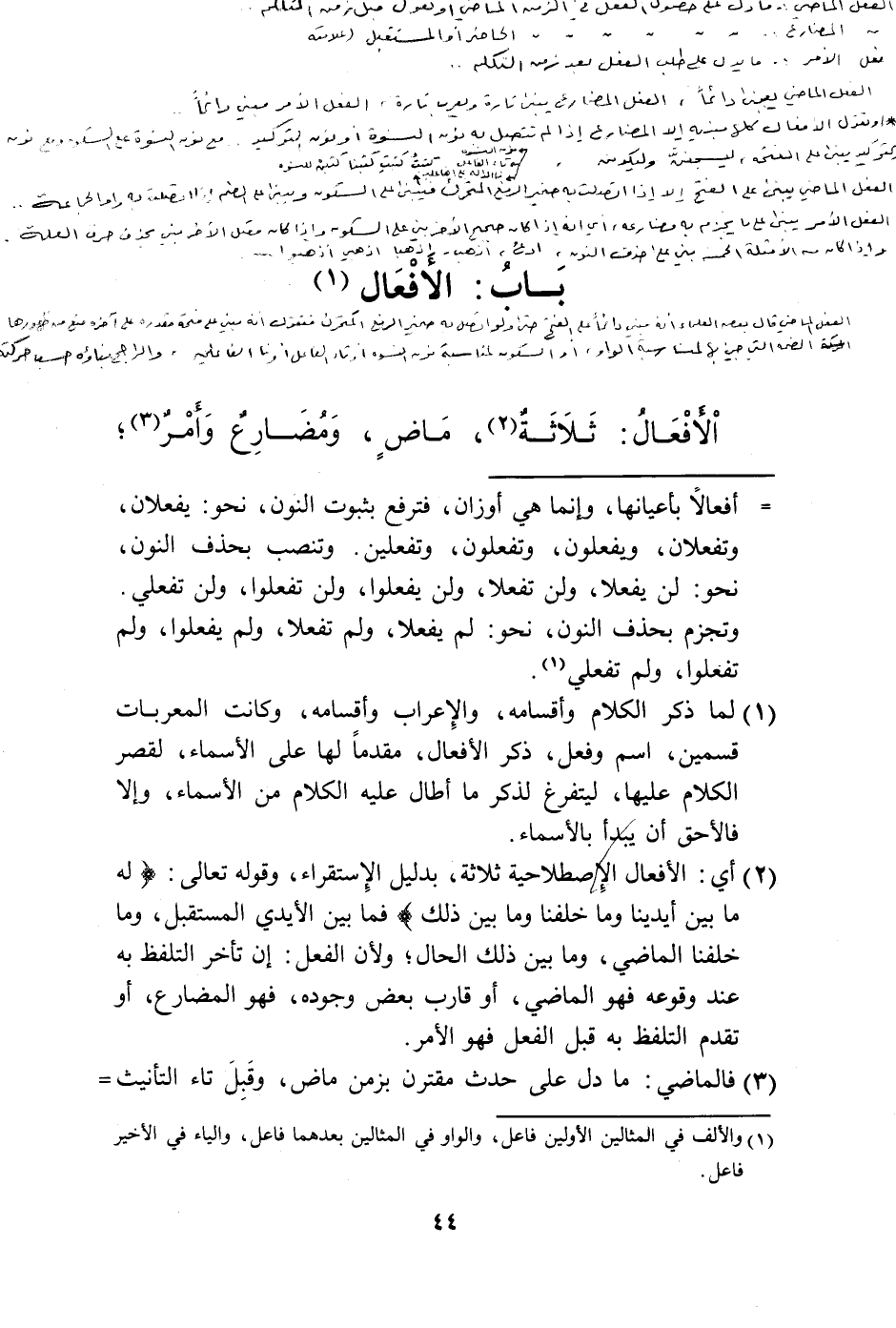 الأفعال ثلاثة (2) : ماض، ومضارع، وأمر (3) ؛