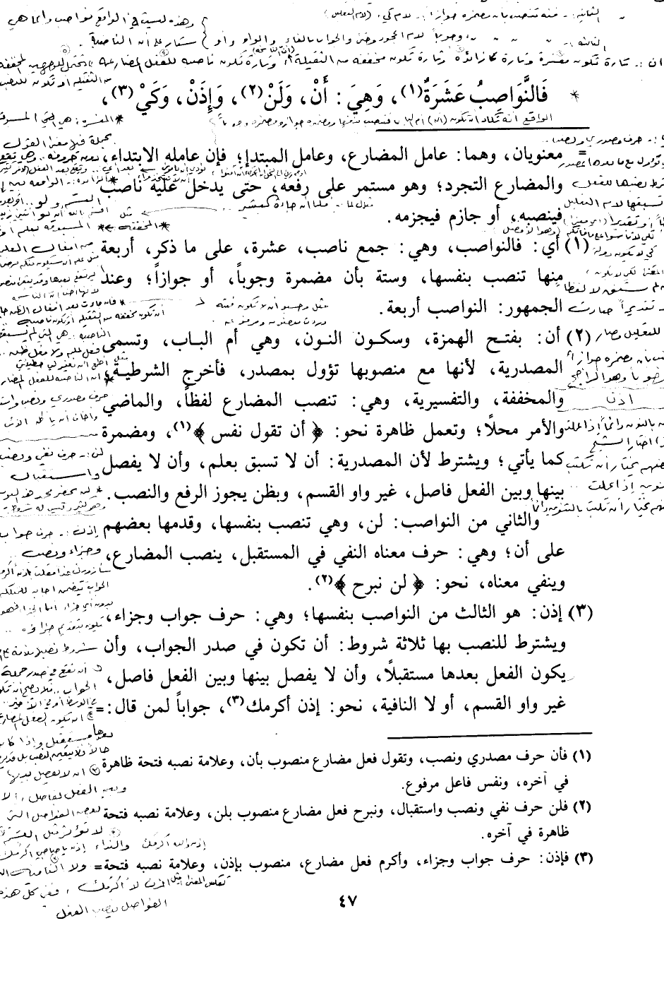 فالنواصب عشرة (1) ، وهي: أن، ولن (2) ، وإذن، وكي (3) ،