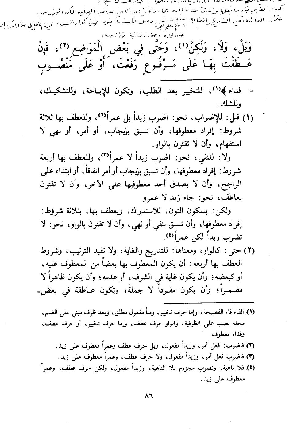 (1) فأو للتخيير نحو: انكح هندا أو أختها (2) ، أو الإباحة بعد الطلب، نحو جالس الحسن، أو ابن سيرين (3) ، والفرق بينهما: أن التخيير لا يجوز الجمع بينهما، بخلاف الإباحة، وأو: للإبهام، أو للشك، نحو: {وَإِنَّا أَوْ إِيَّاكُمْ} ، {لَبِثْنَا يَوْمًا أَوْ بَعْضَ يَوْمٍ} (4) ، وأم: لطلب التعيين نحو: أعندك زيد، أم عمرو (5) ، وبعد همزة التسوية، ونحوها نحو: {أَأَنْذَرْتَهُمْ أَمْ لَمْ تُنْذِرْهُمْ} (6) ، وأما المكسورة الهمزة المسبوقة بمثلها على القول بأنها عاطفة، والعاطفة إنما هي: الواو التي قبلها، مثل أو في معناها نحو: {فَإِمَّا مَنًّا بَعْدُ وَإِمَّا