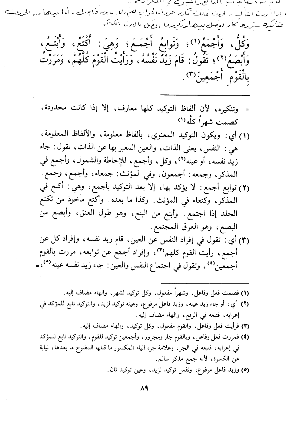 (2) التوكيد بمعنى: المؤكد تابع للمؤكد بفتح الكاف في رفعه إن كان مرفوعا نحو: جاء زيد نفسه (3) وتابع له في نصبه إن كان منصوبا نحو: رأيت زيدًا نفسه وتابع له في خفضه إن كان مخفوضا نحو: مررت بزيد نفسه (4) ، وتابع له في تعريفه إن كان معرفة ولم يقل: