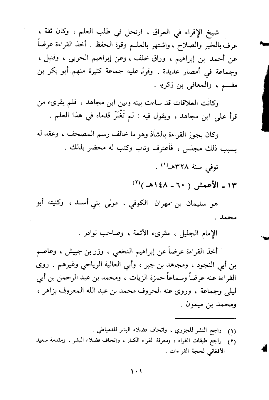 1 راجع طبقات القراء، ومعرفة القراء الكبار، وإتحاف فضلاء البشر، ومقدمة سعيد الأفغاني لحجة القراءات.