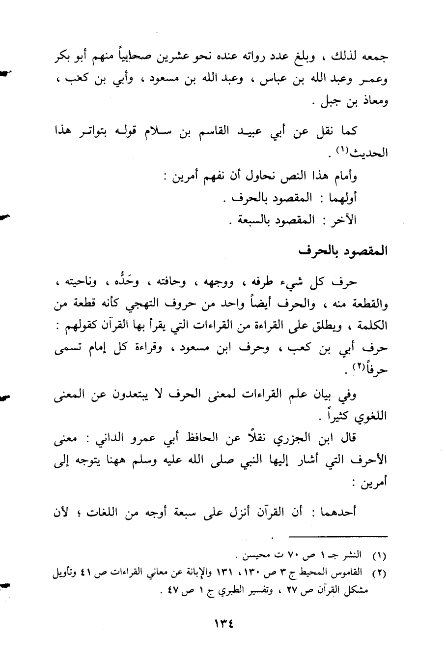 1 القاموس المحيط ج3 ص130، 131، والإبانة عن معاني القراءات ص41 وتأويل مشكل القرآن ص27، وتفسير الطبري ج1 ص47.