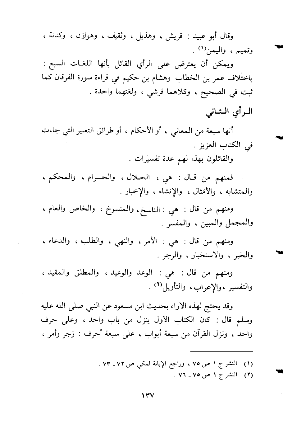 1 النشر ج1 ص75، وراجع الإبانة لمكي ص72- 73.