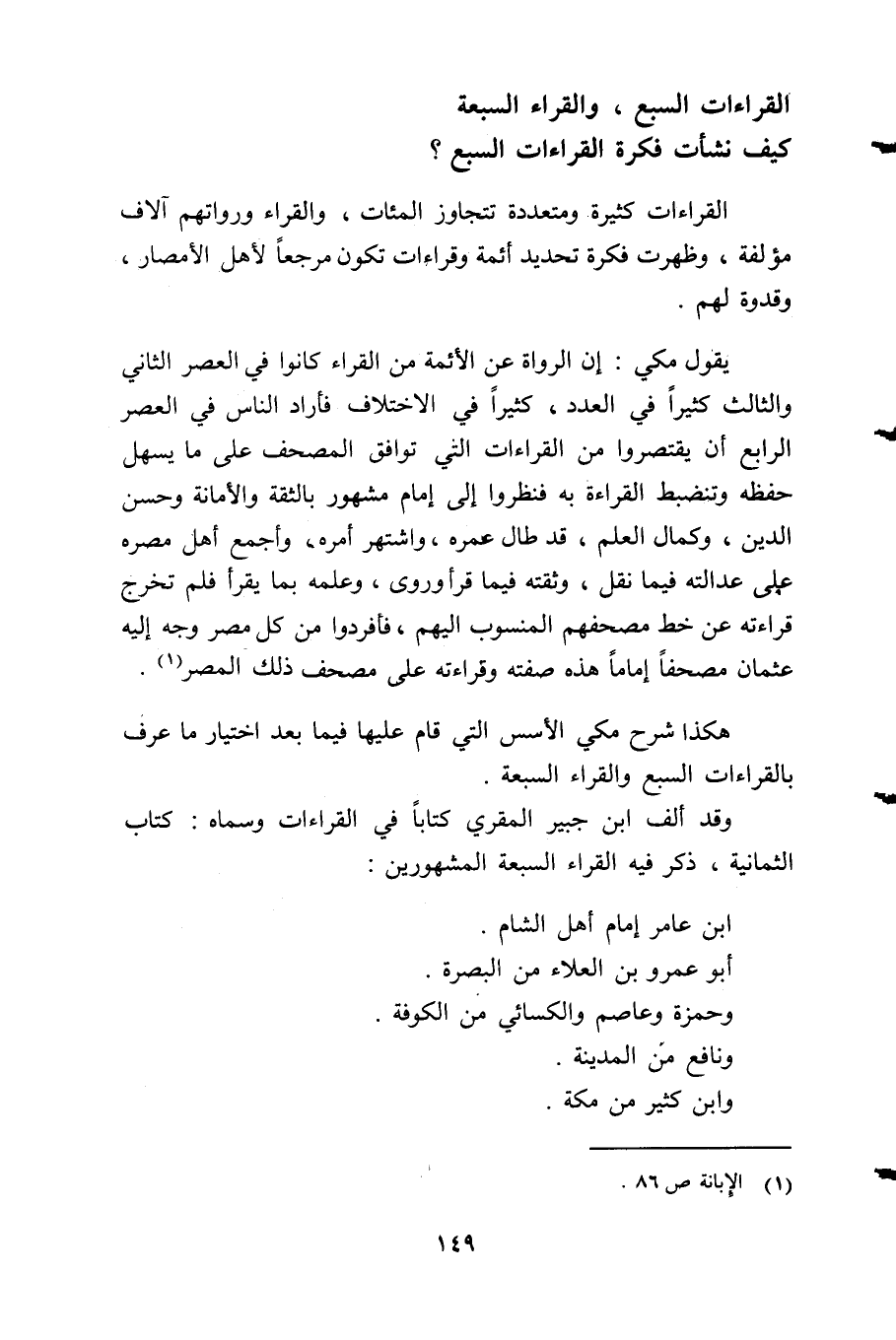 هكذا شرح مكي الأسس التي قام عليها فيما بعد اختيار ما عرف بالقراءات السبع والقراء السبعة.