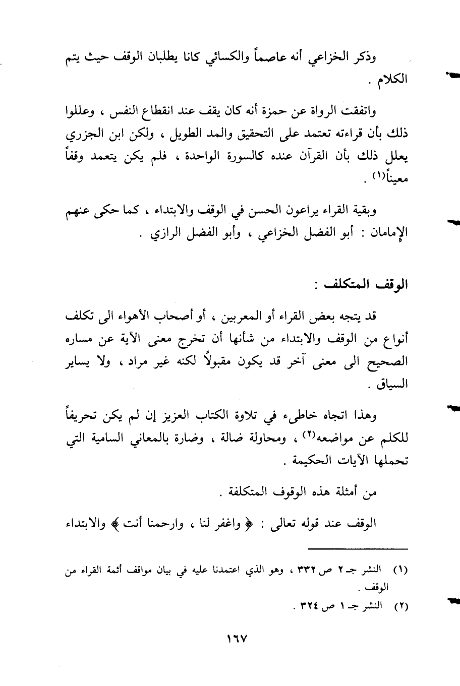 1 النشر ج2 ص 332، وهو الذي اعتمدنا عليه في بيان مواقف أئمة القراء من الوقف.
