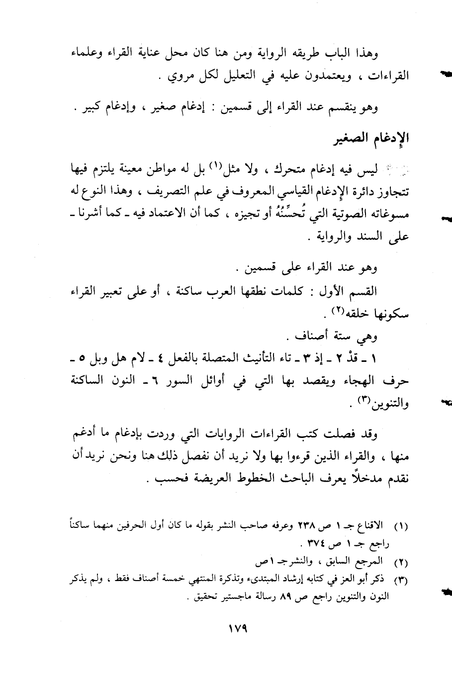 3 ذكر أبو العز في كتابه إرشاد المبتدئ وتذكرة المنتهي خمسة أصناف فقط، ولم يذكر النون والتنوين راجع ص89، رسالة ماجستير تحقيق.