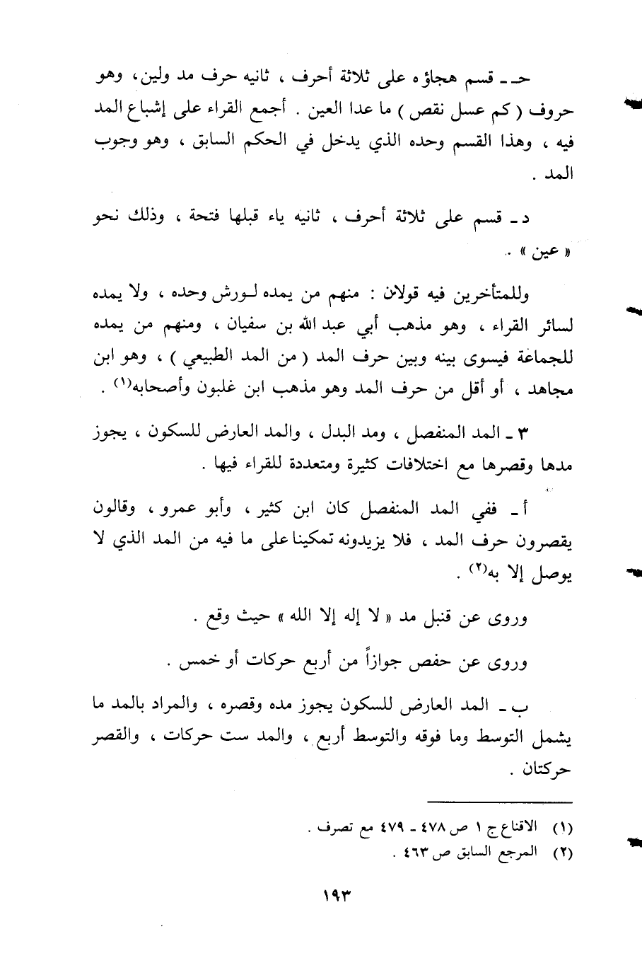 3- المد المنفصل، ومد البدل، والمد العارض للسكون، يجوز مدها وقصرها مع اختلافات كثيرة ومتعددة للقراء فيها.
