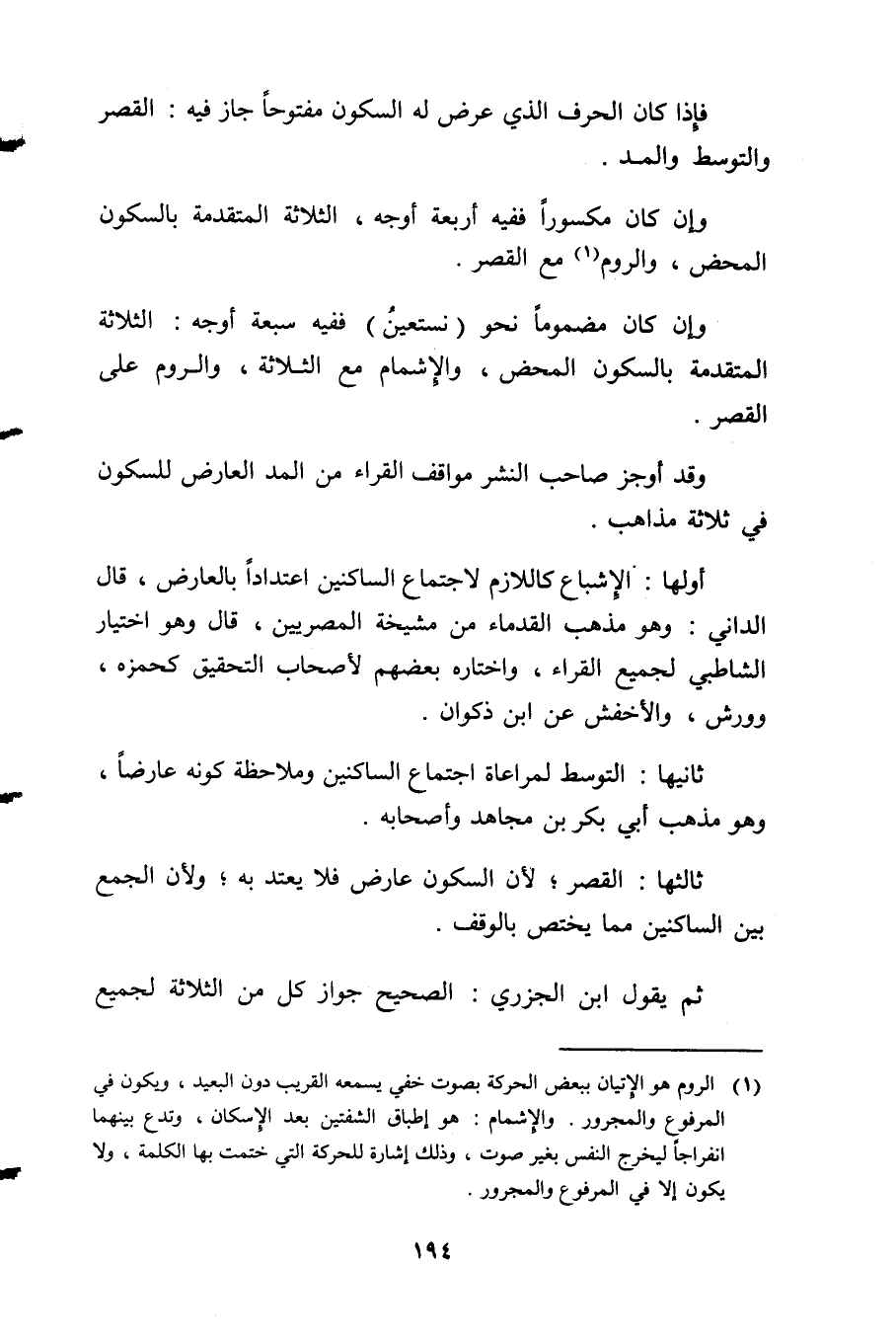 1 الروم هو الإتيان ببعض الحركة بصوت خفي يسمعه القريب دون البعيد، ويكون في المرفوع والمجرور، والإشمام: هو إطباق الشفتين بعد الإسكان، وتدع بينهما انفراجًا ليخرج النفس بغير صوت، وذلك إشارة للحركة التي ختمت بها الكلمة، ولا يكون إلا في المرفوع والمجرور.