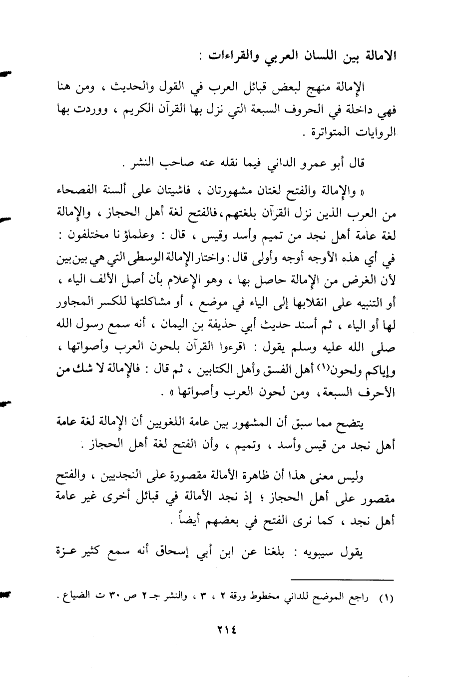 وليس معنى هذا أن ظاهرة الإمالة مقصورة على النجديين، والفتح مقصور على أهل الحجاز؛ إذ نجد الإمالة في قبائل أخرى غير عامة أهل نجد، كما نرى الفتح في بعضهم أيضًا.