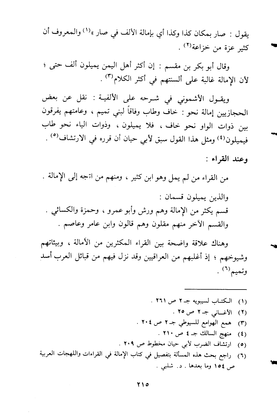 6 راجع بحث هذه المسألة بتفصيل في كتاب الإمالة في القراءات واللهجات العربية ص154 وما بعدها. د. شلبي.