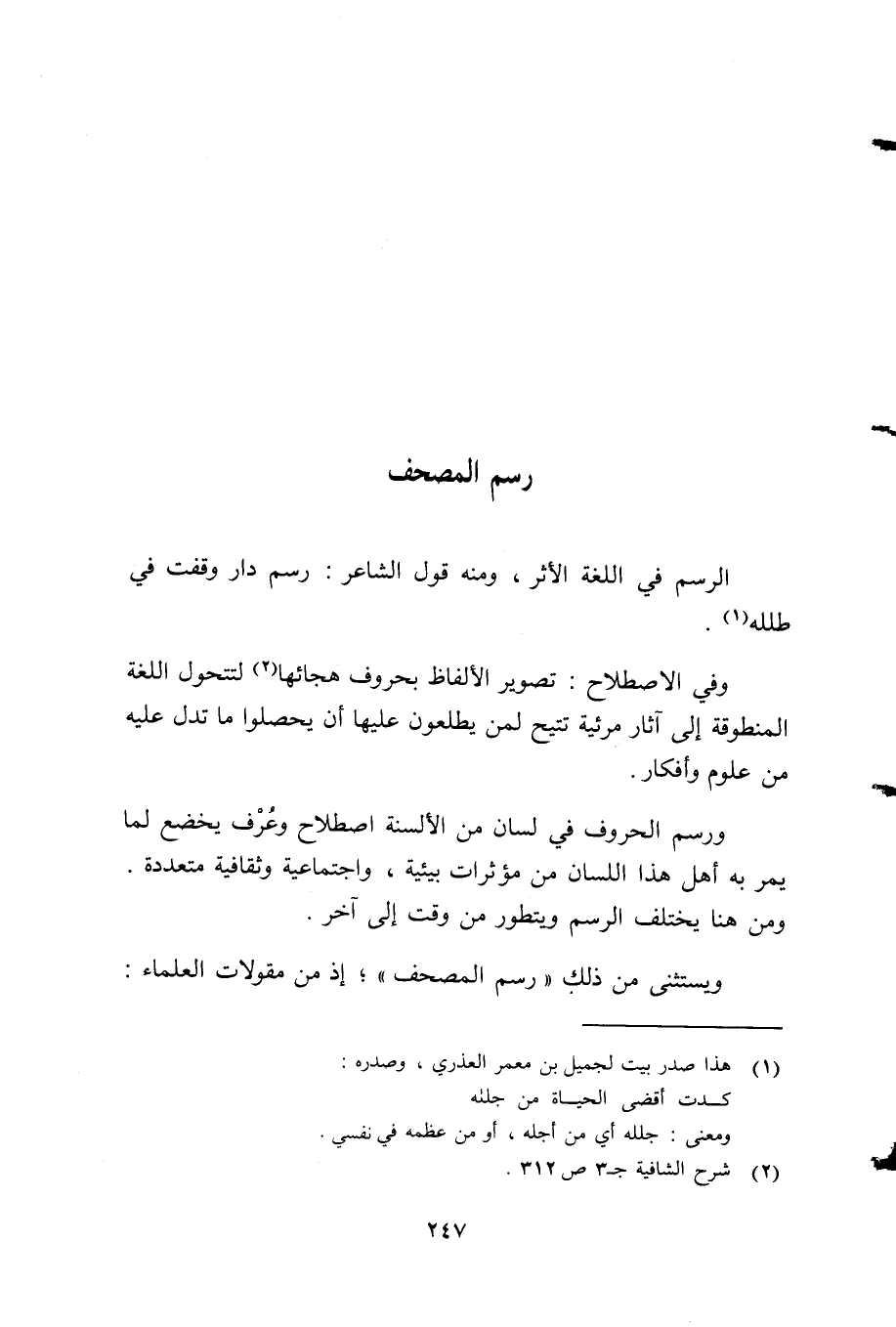 ويستثنى من ذلك "رسم المصحف"؛ إذ من مقولات العلماء: