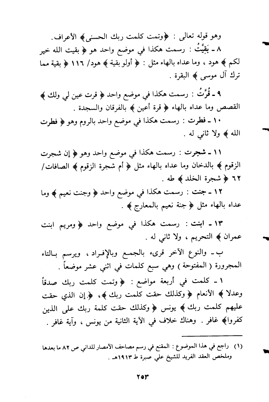1 راجع في هذا الموضوع: المقنع في رسم مصاحف الأمصار للداني ص82 ما بعدها وملخص العقد الفريد للشيخ علي صبرة ط1913هـ.