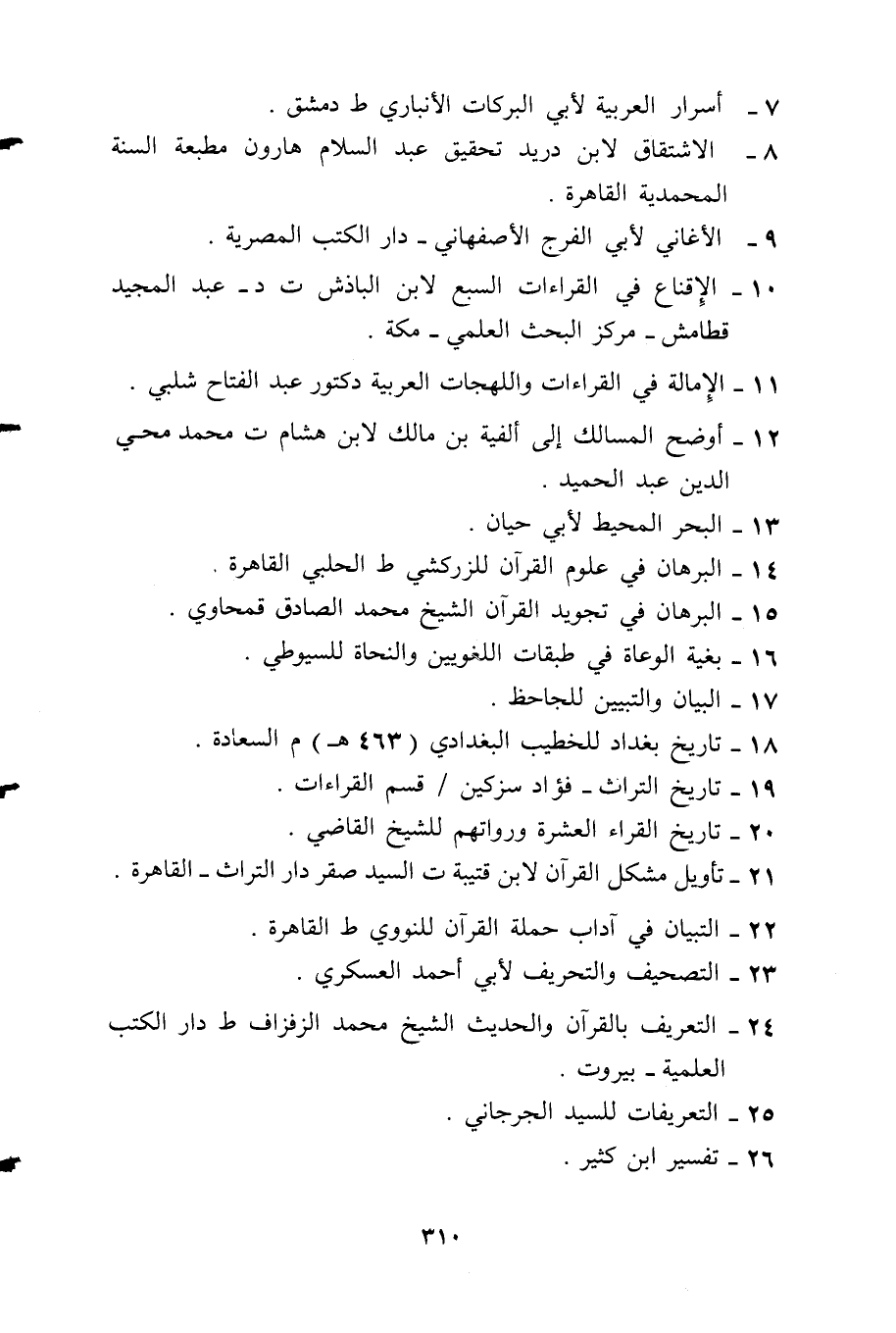 10- الإقناع في القراءات السبع لابن الباذش ت د- عبد المجيد قطامش- مركز البحث العلمي- مكة.