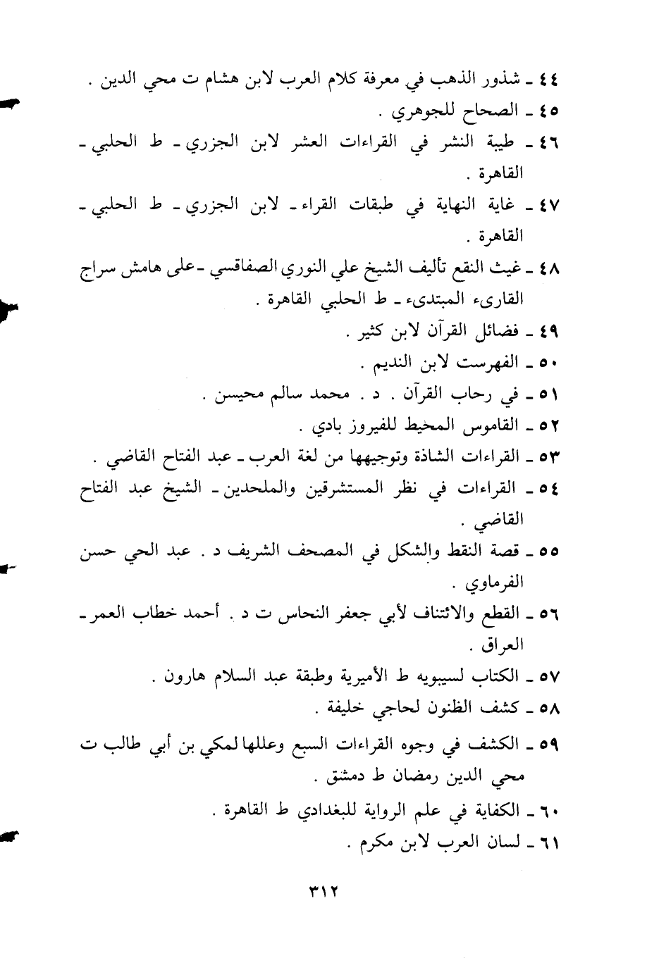 59- الكشف في وجوه القراءات السبع وعللها لمكي بن أبي طالب ت محيي الدين رمضان ط دمشق.