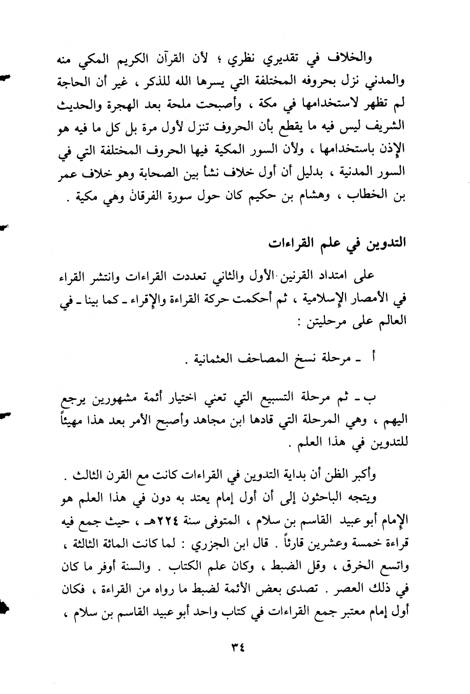 والخلاف في تقديري نظري؛ لأن القرآن الكريم المكي منه والمدني نزل بحروفه المختلفة التي يسرها الله للذكر، غير أن الحاجة لم تظهر لاستخدامها في مكة، وأصبحت ملحة بعد الهجرة والحديث الشريف ليس فيه ما يقطع بأن الحروف تنزل لأول مرة بل كل ما فيه هو الإذن باستخدامها؛ ولأن السور المكية فيها الحروف المختلفة التي في السور المدنية، بدليل أن أول خلاف نشأ بين الصحابة وهو خلاف عمر بن الخطاب، وهشام بن حكيم كان حول سورة الفرقان وهي مكية.