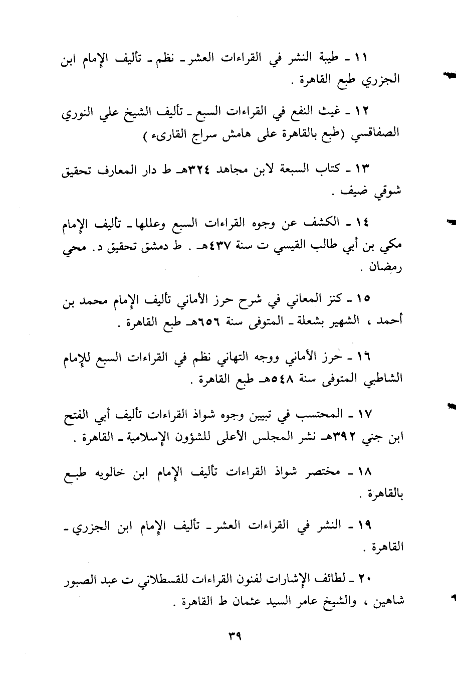 20- لطائف الإشارات لفنون القراءات للقسطلاني ت عبد الصبور شاهين، والشيخ عامر السيد عثمان طـ القاهرة.