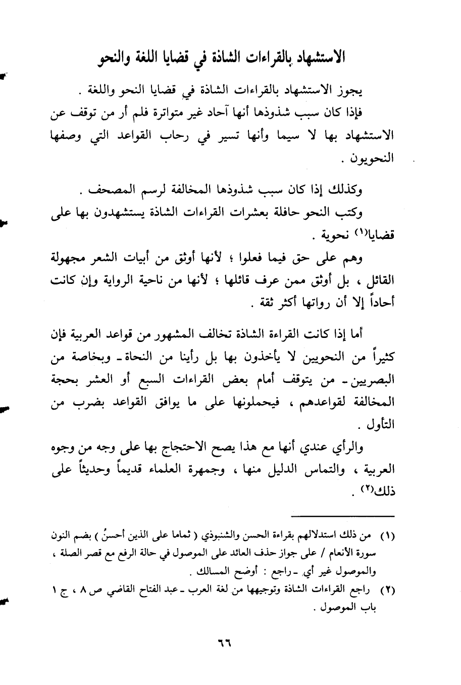 يجوز الاستشهاد بالقراءات الشاذة في قضايا النحو واللغة.
