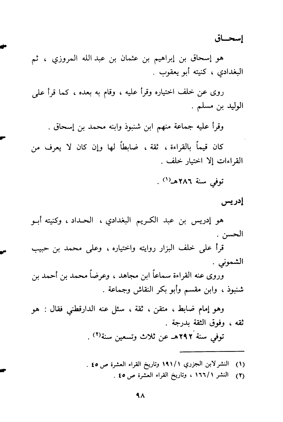 2 النشر 1/ 199، وتاريخ القراء العشرة ص45.