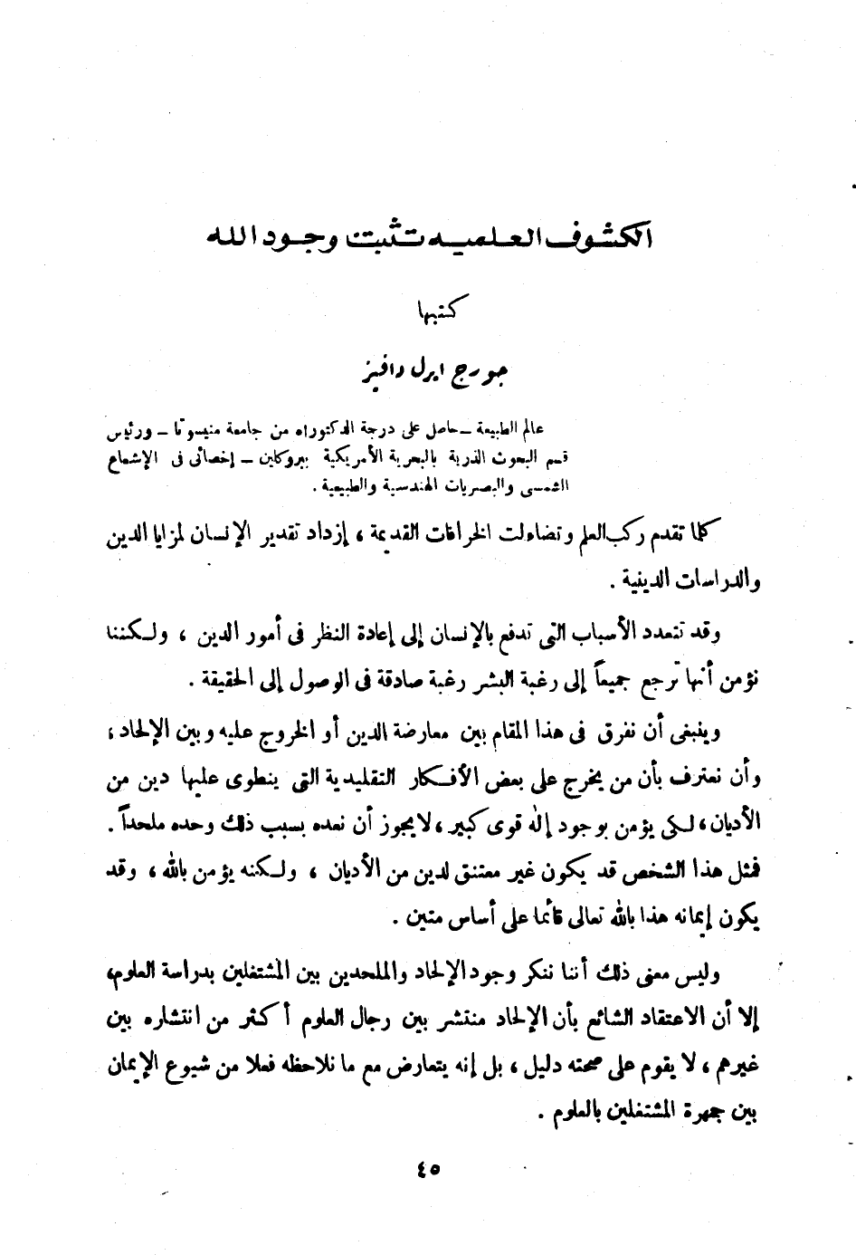 وليس معنى ذلك أننا ننكر وجود الالحاد والملحدين بين المشتغلين بدراسة العلوم، الا ان الاعتقاد الشائع بأن الإلحاد منتشر بين رجال العلوم اكثر من انتشاره بين غيرهم، لا يقوم على صحته دليل، بل انه يتعارض مع ما نلاحظه فعلا من شيوع الإيمان بين جمهرة المشتغلين بالعلوم.
