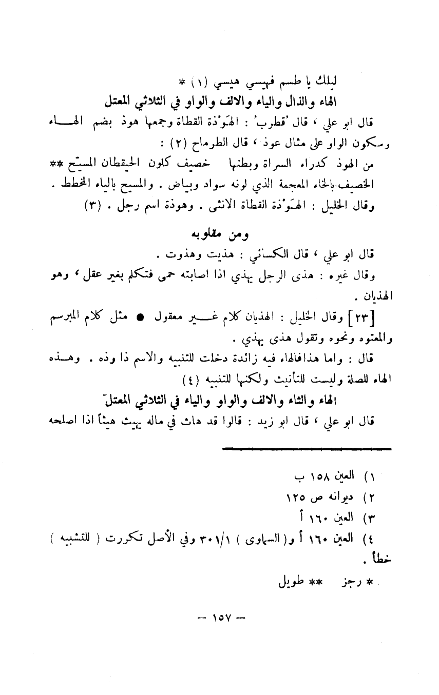 قال أبو علي، قال الكسائي: هذيت وهذوت.