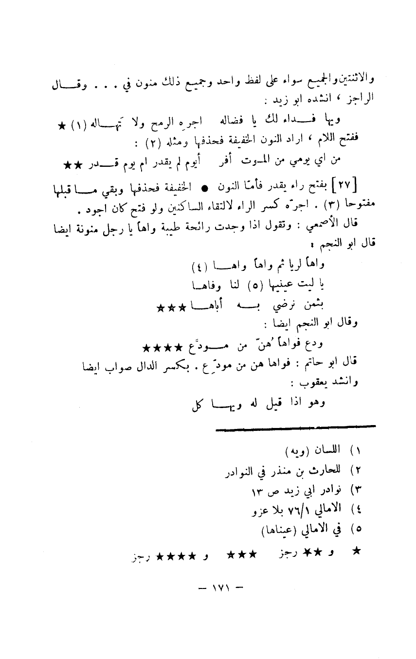 والاثنتين والجميع سواء على لفظ واحد وجميع ذلك منون في ... وقال الراجز، أنشده أبو زيد: