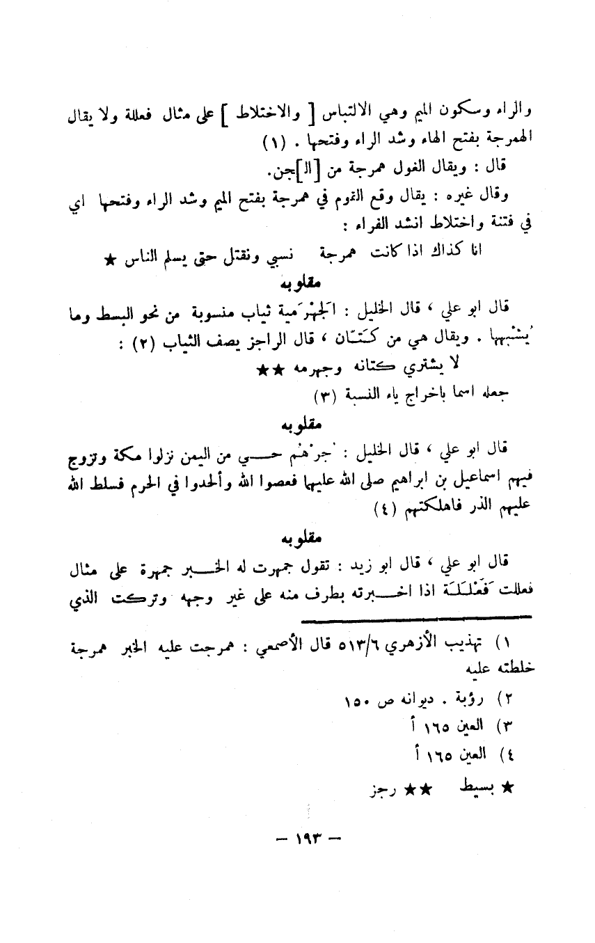 والراء وسكون الميم وهي الالتباس والاختلاط على مثال فعللة ولا يقال الهمرجة بفتح الهاء وشد الراء وفتحها.