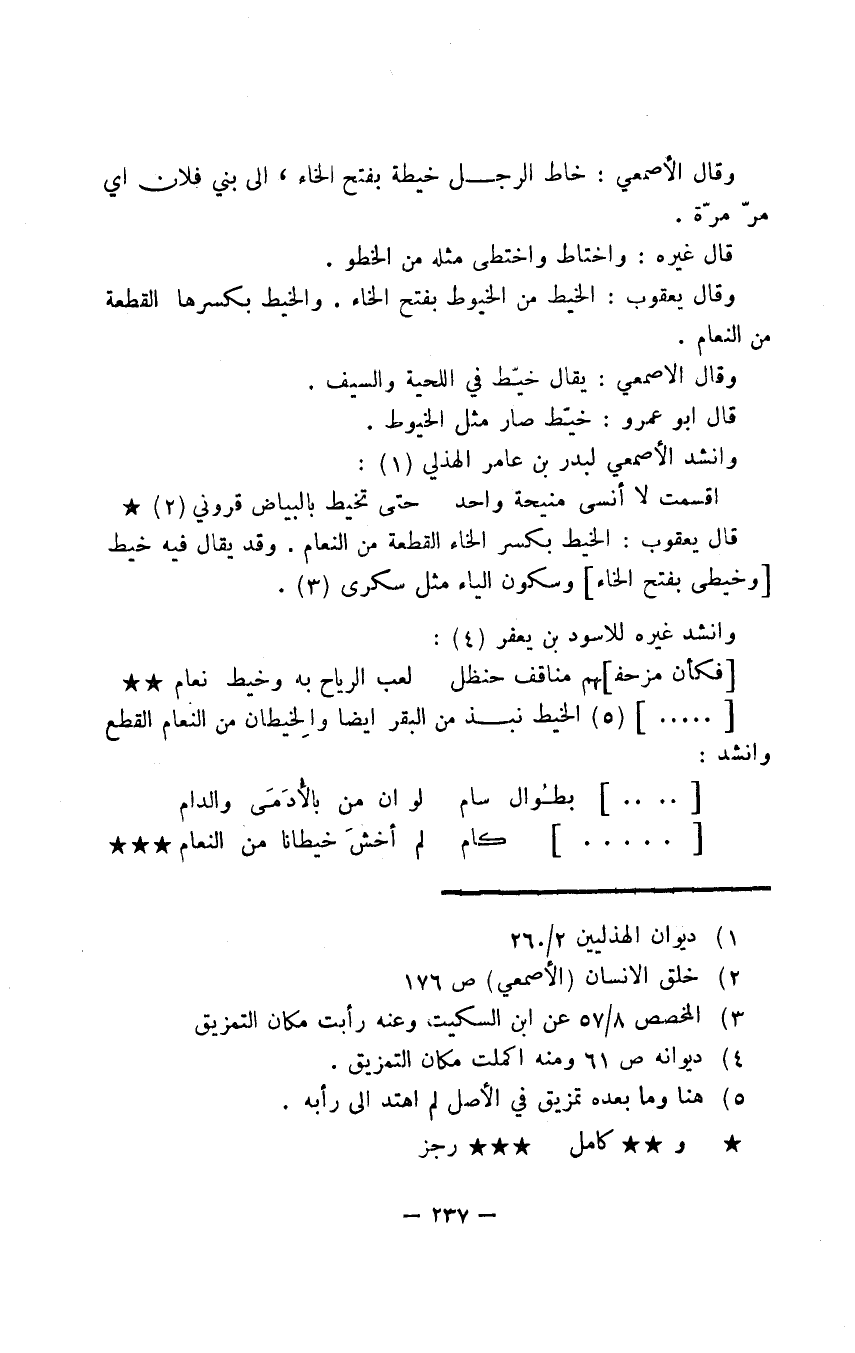 وقال الأصمعي: خاط الرجل خيطة بفتح الخاء، إلى بني فلان أي مرّ مرّة.