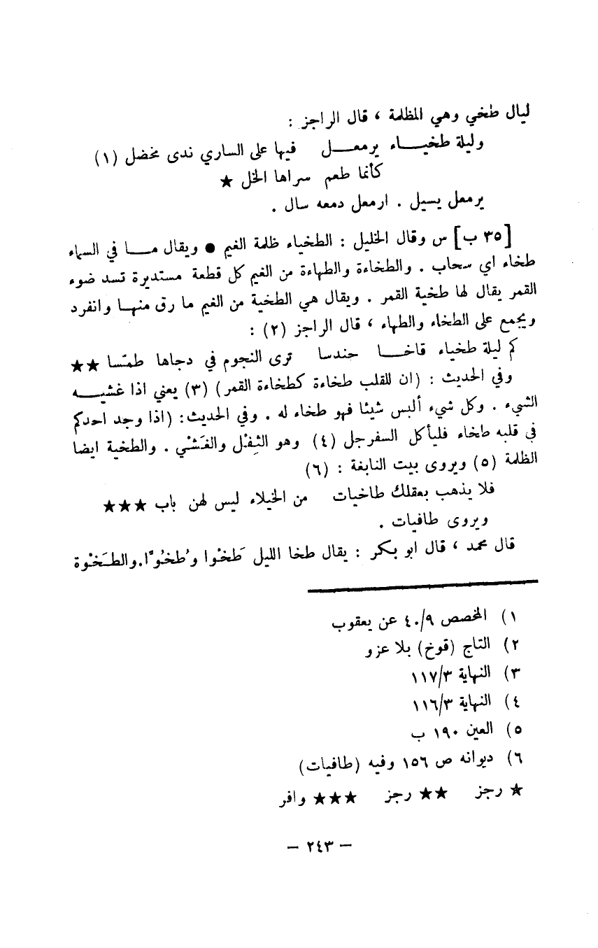 كم ليلة طخياء فاخا حندسا ... ترى النجوم في دجاها طمّسا