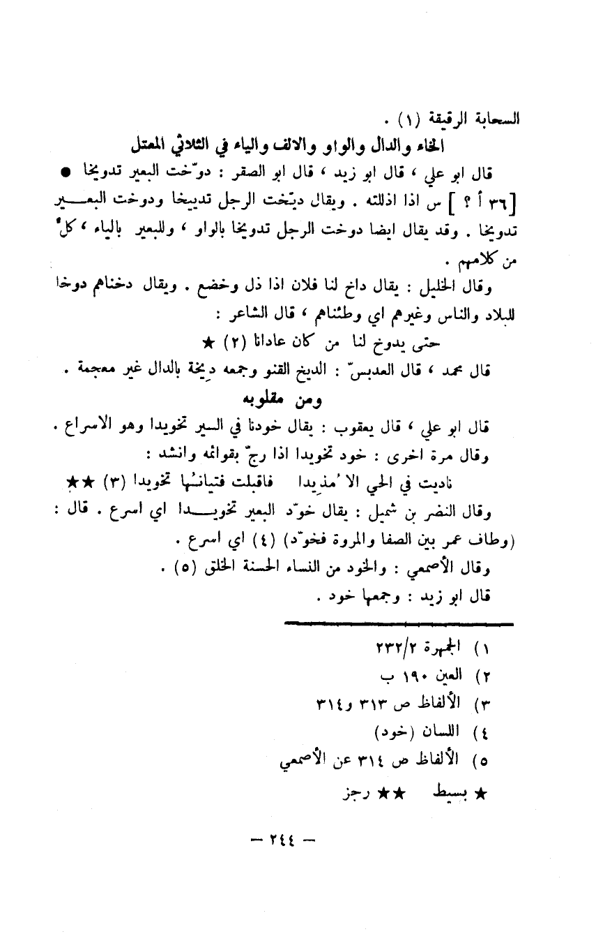 الخاء والدال والواو والألف والياء في الثلاثي المعتل