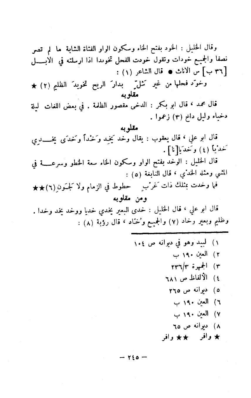 قال أبو علي، قال الخليل: خدى البعير يخدي خديا ووخد يخد وخدا. وظليم وبيعر وخاد والجميع وُخّاد، قال رؤبة: