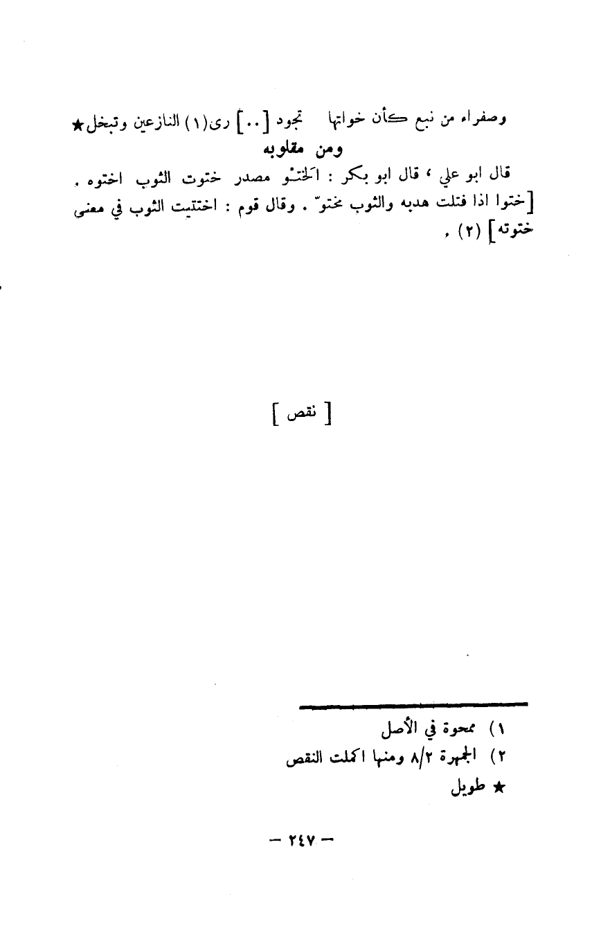 قال أبو علي، قال أبو بكر: الخَتْو مصدر ختوت الثوب أختوه ختوا إذا فتلت هدبه والثوب مختوّ. وقال قوم: اختتيت الثوب في معنى ختوته.