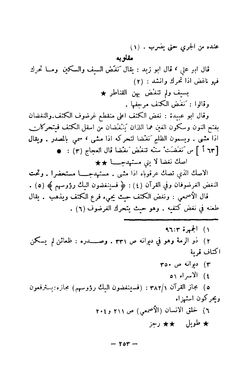 الأصك الذي تصك عرقوباه إذا مشى. مستهدجا مستحضرا. وتحت النغض الغرضوفان وفي القرآن: {فسينغضون إليك رؤوسهم}.
