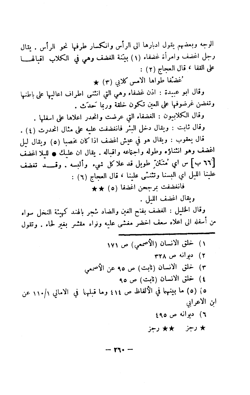 وقال الخليل: الغضف بفتح الغين والضاد شجر بالهند كهيئة النخل سواء من أسفله إلى أعلاه سعف أخضر مغشى عليه ونواه مقشر بغير لحاء. وتقول