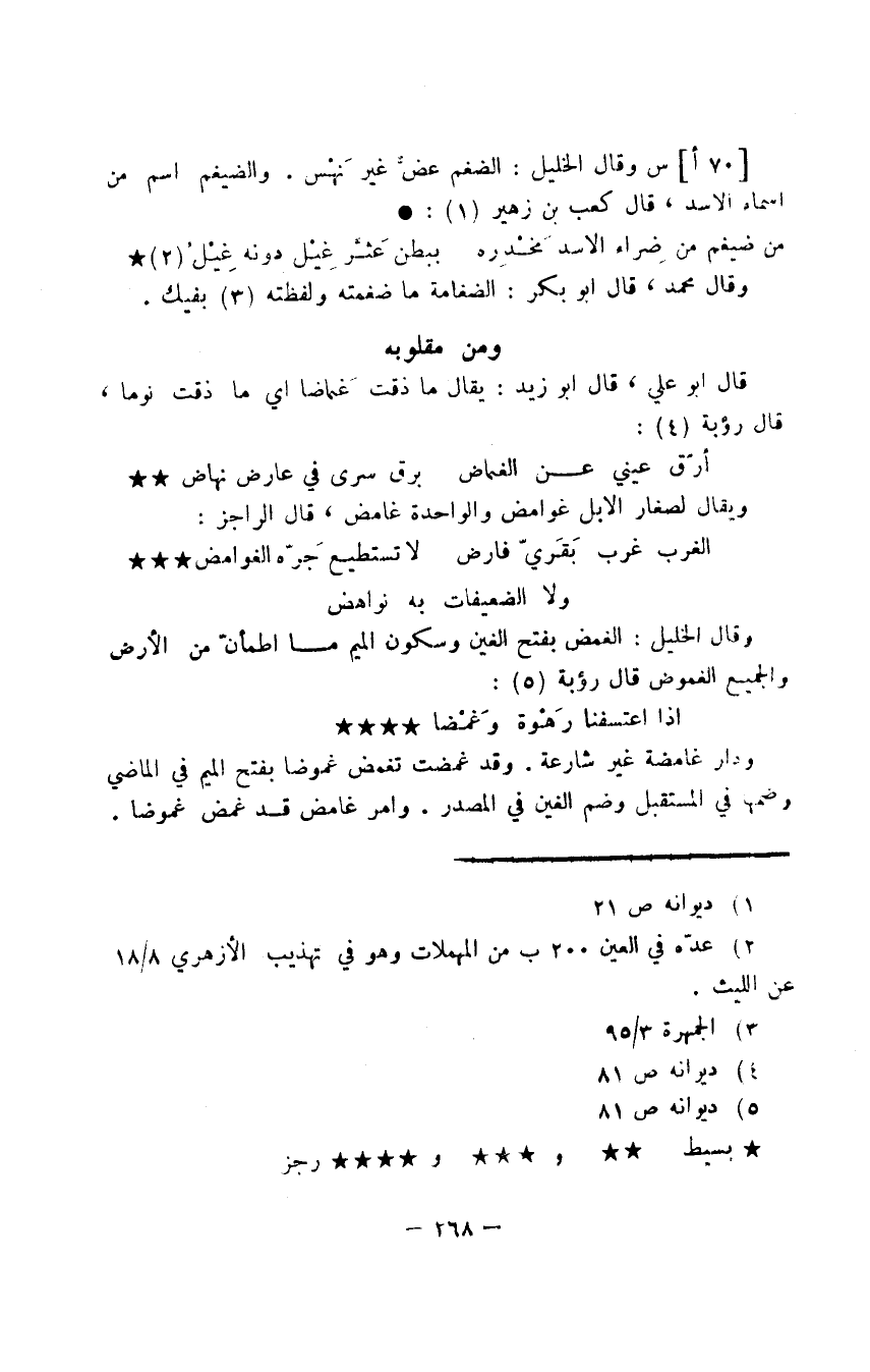 قال أبو علي، قال أبو زيد: يقال ما ذقت غَماضا أي ما ذقت نوما، قال رؤبة:
