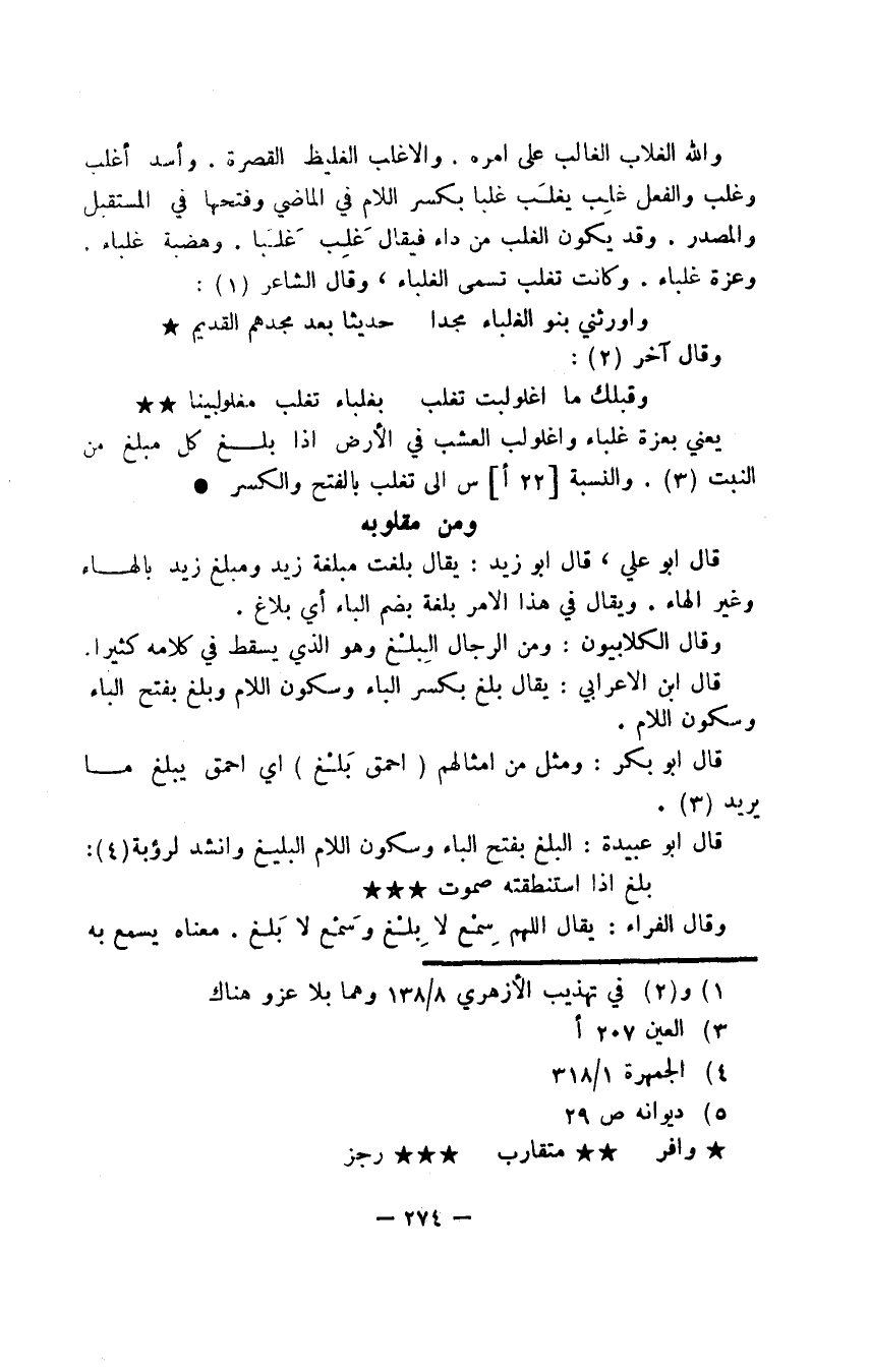 قال أبو علي، قال أبو زيد: يقال بلغت مبلغة زيد ومبلغ زيد بالهاء وغير الهاء. ويقال في هذا الأمر بلغة بضم الباء أي بلاغ.