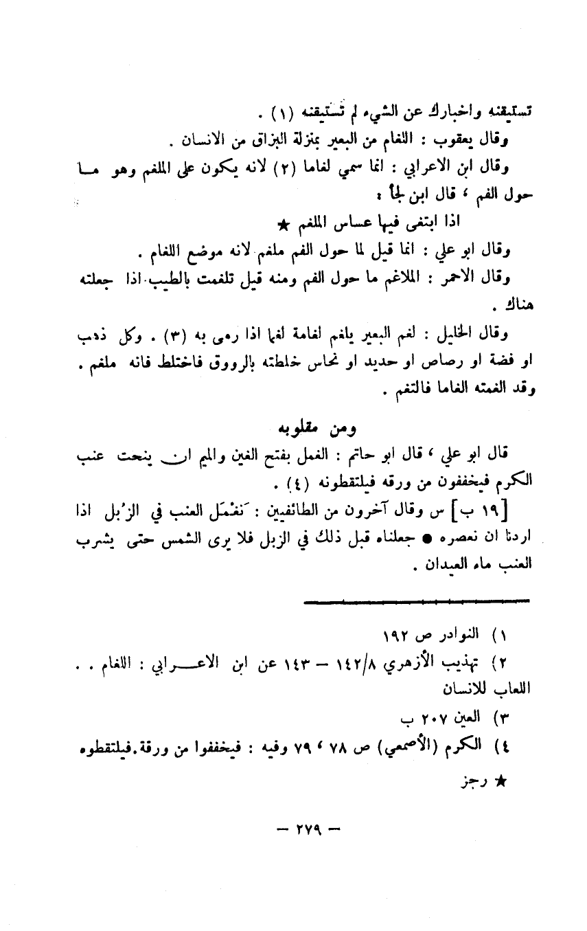 وقال يعقوب: اللغام من البعير بمنزلة البزاق من الإنسان.