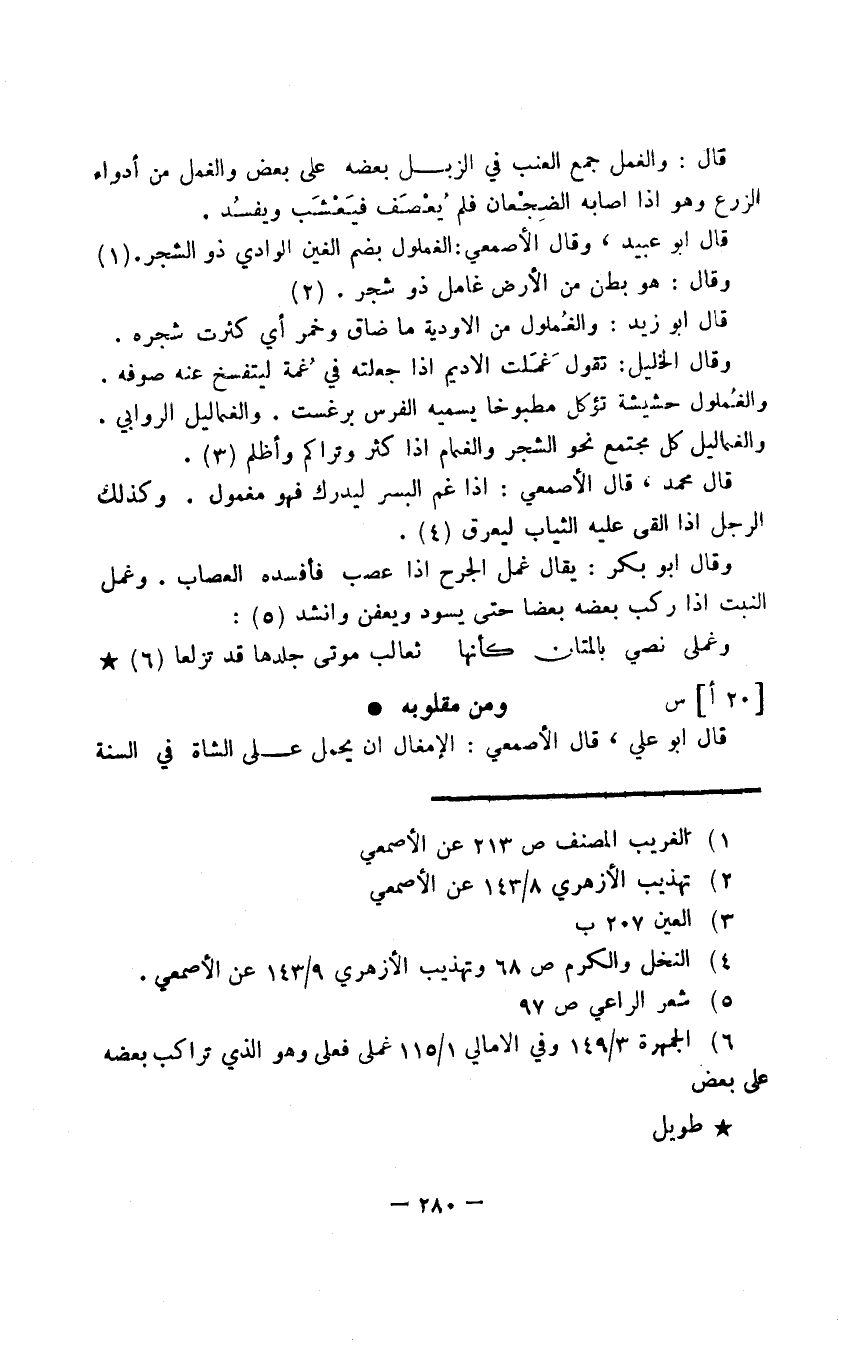 قال أبو عبيد، وقال الأصمعي: الغملول بضم الغين الوادي ذو الشجر.