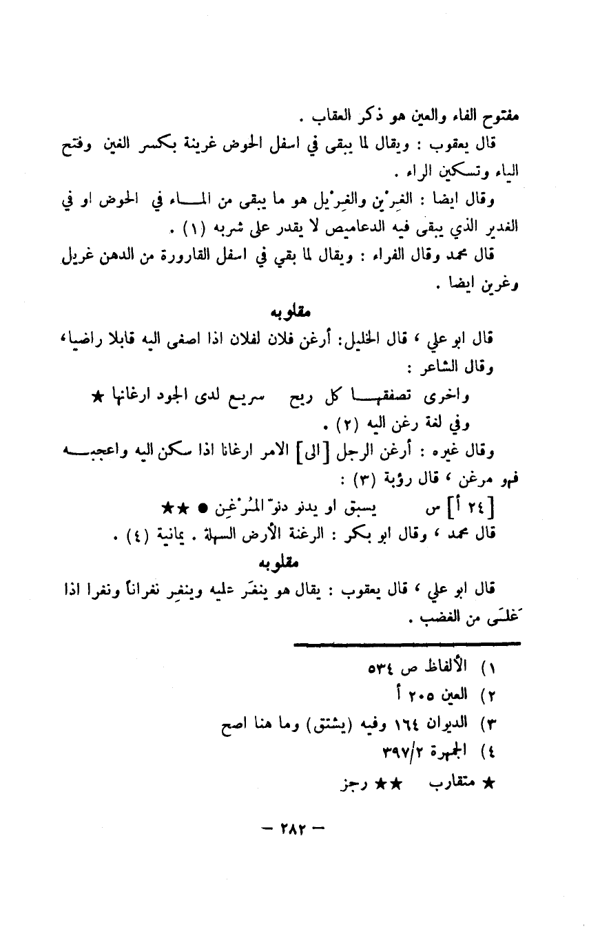 قال محمد وقال الفراء: ويقال لما بقي في أسفل القارورة من الدهن غريل وغرين أيضا.