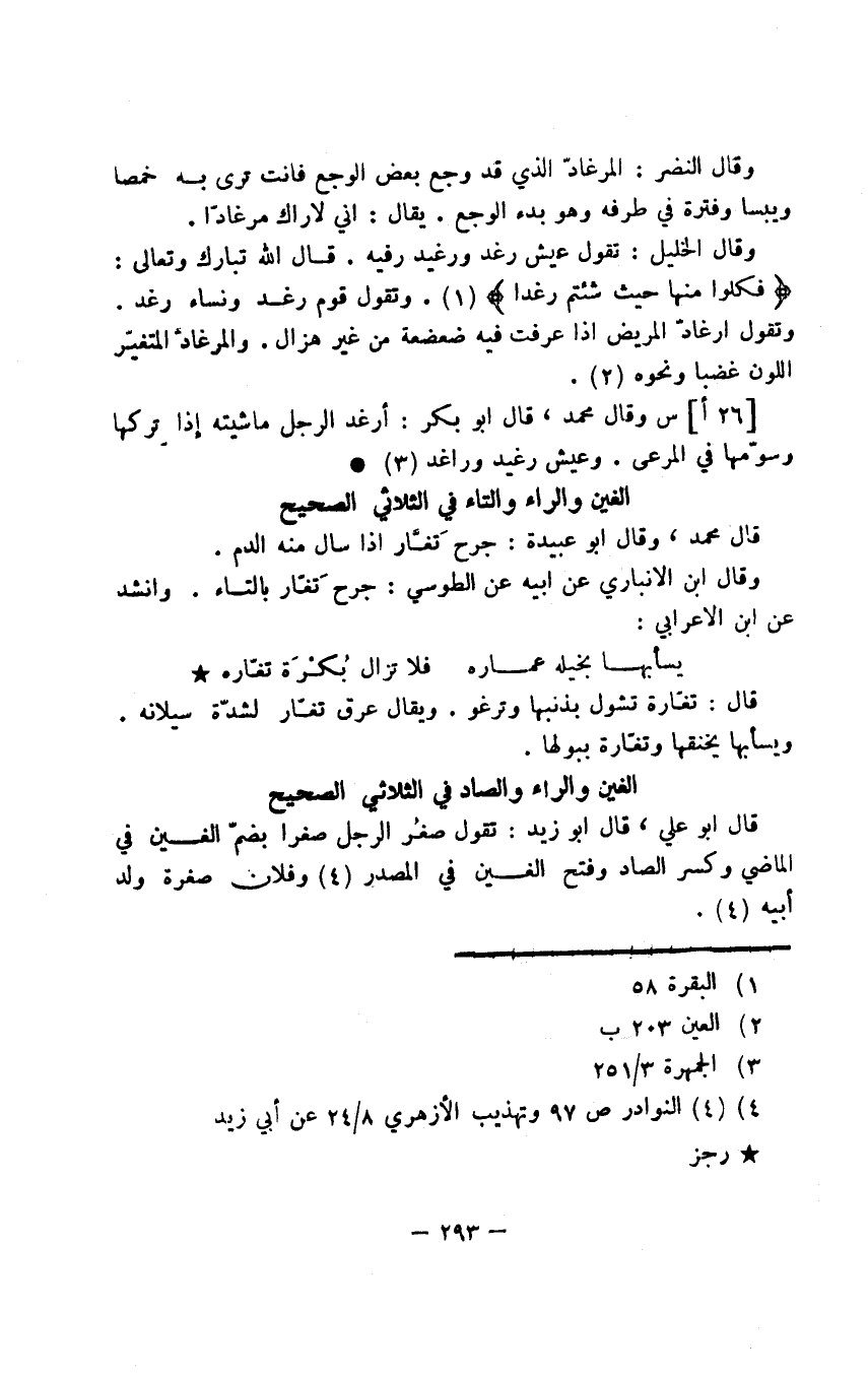 الغين والراء والصاد في الثلاثي الصحيح