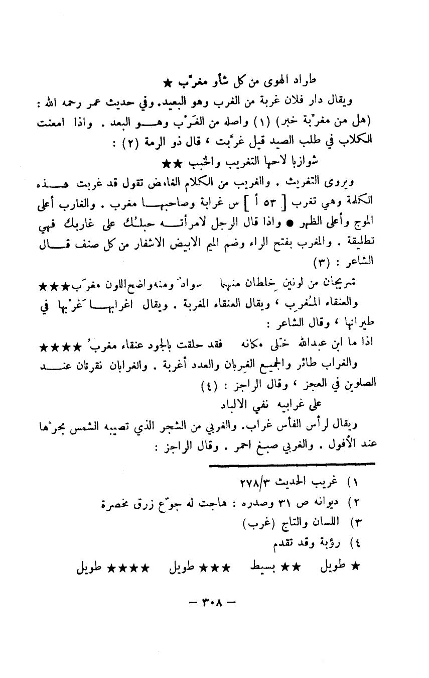 ويقال دار فلان غربة من الغرب وهو البعيد. وفي حديث عمر رحمه الله: (هل من مغرِّبة خبر) وأصله من الغَرْب وهو البعد. وإذا أمعنت الكلاب في طلب الصيد قيل غرَّبت، قال ذو الرمة: