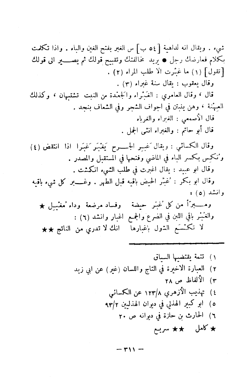شيء. ويقال إنه لداهية الغبر بفتح الغين والباء. وإذا تكلمت بكلام فعارضك رجل يريد مخالفتك وتقبيح قولك ثم يصير إلى قولك تقول ما غبُرت إلا طلب المراء.